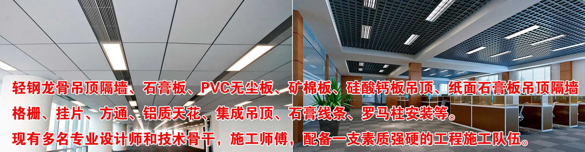 名揚裝飾材料廠價直銷部成立于2007年,主要經營防水防火高強硅鈣板、石膏天花系列、歐式室內裝飾石膏線條、羅馬柱、燈盤、鋁質天花、鋁格柵、鋁條扣、鋁合槽型龍骨,烤漆龍骨系列、輕鋼龍骨、GRC輕質隔墻板、方通、掛片、塑木、集成墻板、GRG異型定做及各種吊頂配件材料,名揚專業承接吊頂安裝工程等室內外一切裝飾工程。